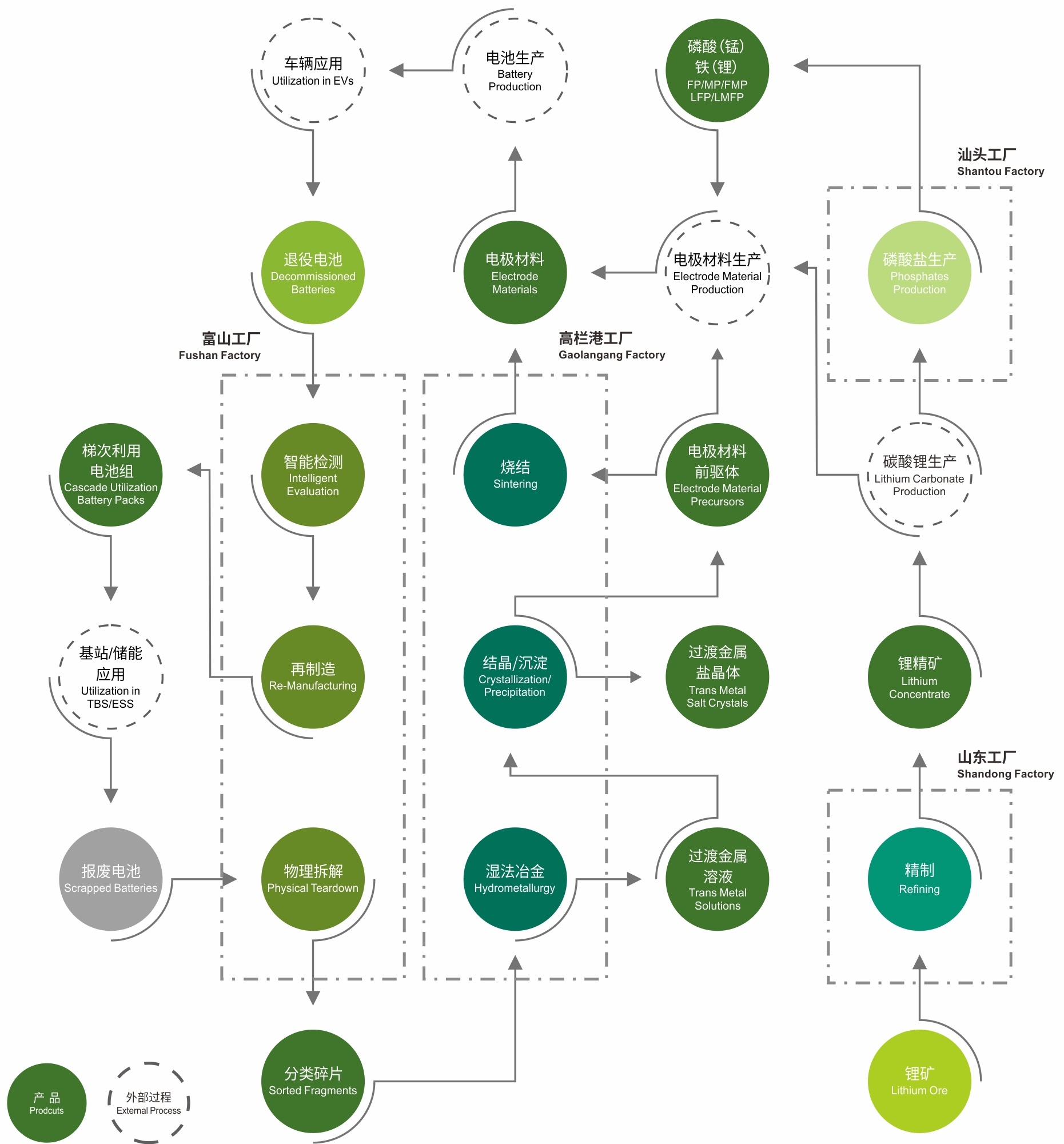 新葡萄88833官网amg作为全国范围内符合《新能源汽车废旧动力蓄电池综合利用行业规范条件》的五家单位之一,国家溯源平台再生利用和梯级利用企业,广东省动力蓄电池回收利用试点单位,掌握“动力电池梯级利用-拆解分类利用-材料修复-有价金属回收-材料制造”全生命周期价值链技术和工程化能力,为业界提供具有国际先进水平的退役动力电池全生命周期整体服务方案。